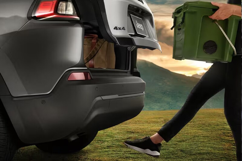Available hands-free liftgate allows you to access your rear cargo space when your hands are full simply by hovering your foot below the rear bumper or choose to use the button-activated tailgate. Mopar offers a number of available accessories built to fit your Cherokee that helps you keep you Cherokee's interior clean from debris and organized.