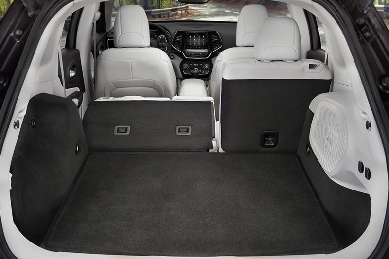 While the Jeep Cherokee falls into the compact crossover SUV category, inside you will find plenty of room for up to 5-passengers plus ample cargo room for suitcases or equipment, ready for your next adventure. Driver's will find comfort during those winter months with the available heated steering wheel and heated and ventilated front seats. Rear seats offer plenty of legroom for passengers while the 60/40 split folding rear seats offers the flexibility you need for larger items. Choose to lower one side or both for maximum available space, offering up to 54.7 cubic feet of space.